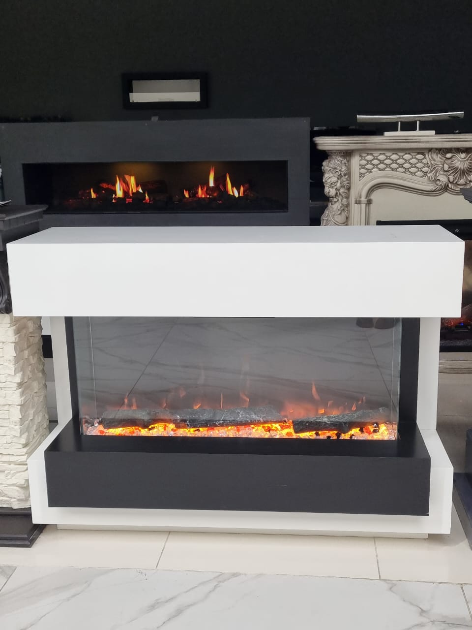 Каминокомплект Cube 36 - Белый с черным с очагом Astra 36 RF (выставочный образец)