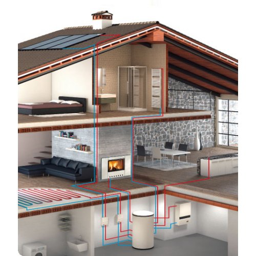 Термо топка MT с бойлером может быть подключена к конвекционному или лучистому отоплению, или же сопряжена с солнечным отоплением.