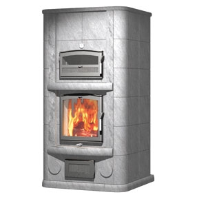 Верхнее подключение дымохода. Пристенная печь-камин с духовкой MARKETTA Solo 1 (NunnaUuni).