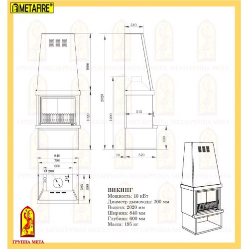 - Диам. дымохода: 200 мм