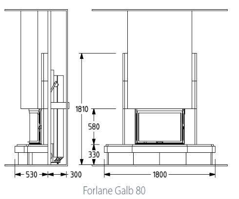 Современный дом должен украшать именно такой камин в стиле модерн – необычный и привлекающий внимание. Фронтальный пристенный камин Forlane pris 80 идеален для поклонников интересных дизайнерских решений. Благодаря конструкции топки, наблюдать за огнем можно не только находясь перед камином, но ещё и сбоку. Каминные полки изготовлены из скалистого мрамора красного цвета.